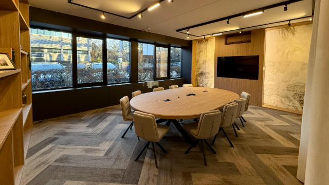 Warm, elegant, and comfortable boardroom. Around its large table for 14 people, everything is in place to work in optimal conditions—whether for a committee meeting, a client appointment, or an in-depth work session.